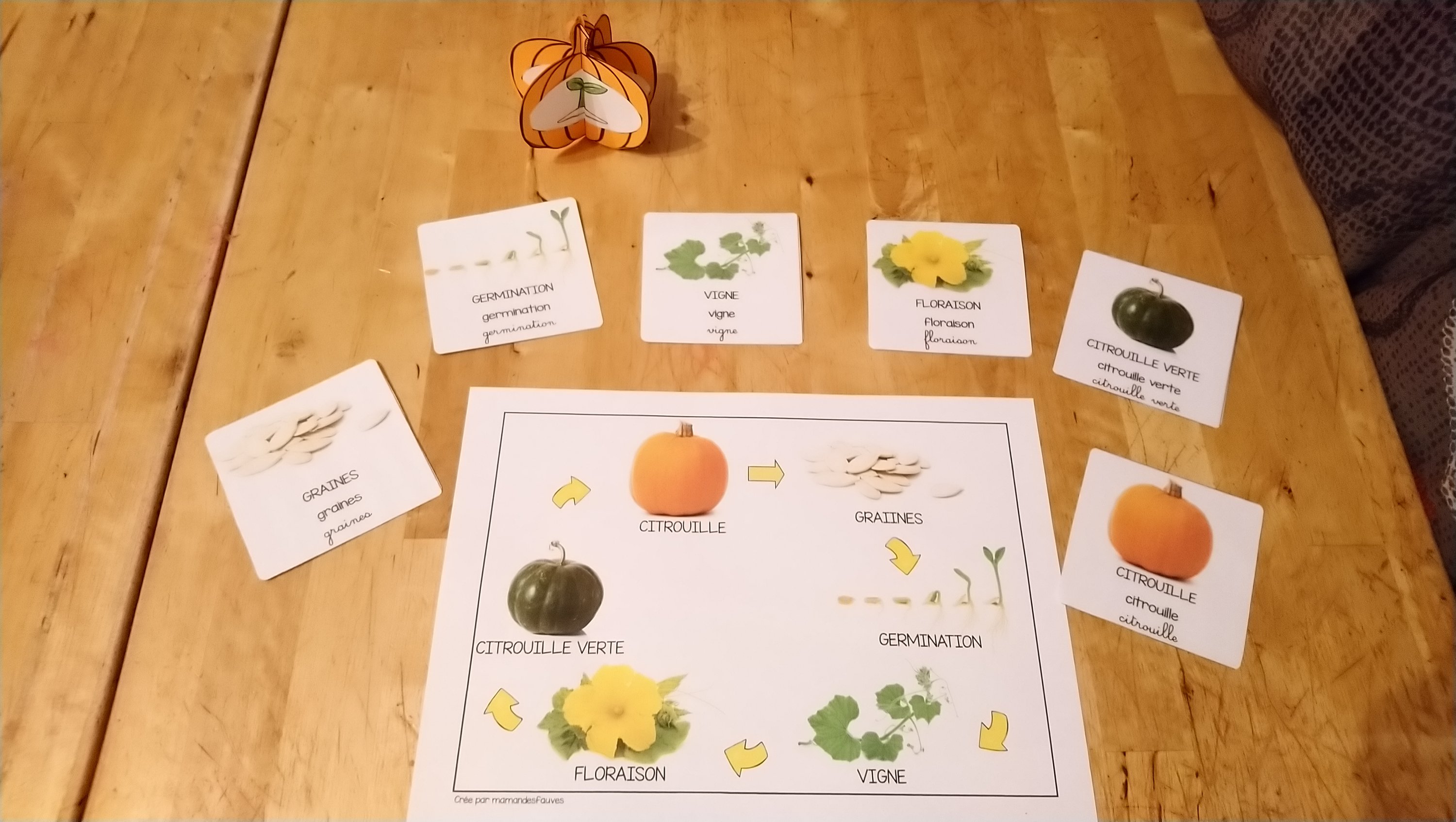 Puis nous avons retravailler le cycle de vie des citrouilles avec les cartes nomenclatures.