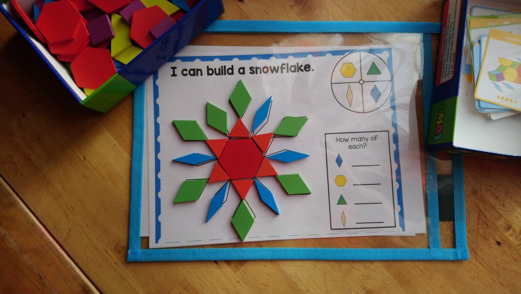 Les tangrams sont superbes pour travailler la motricité fine. Il faut beaucoup de précision pour ne pas bouger les autres pièces déjà déposés. Celui de l’hiver j’ai trouvé ici.