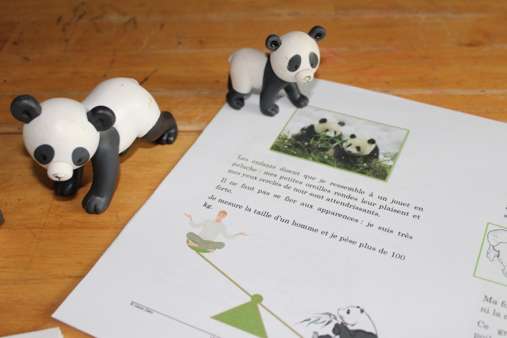 Le kit « Le Panda » contient 5 activités de découpage et collage ainsi qu’un texte qui explique la vie des pandas, dans ce texte on peut suivre une panda qui met au monde son bébé et qui nous raconte comment son bébé grandit. On va aussi pouvoir apprendre comment les chinois protègent les pandas et ce qu’ils font contre la déforestation. Ce qui m’a plu le plus était le texte car c’était fluide, léger et informatif en même temps.
