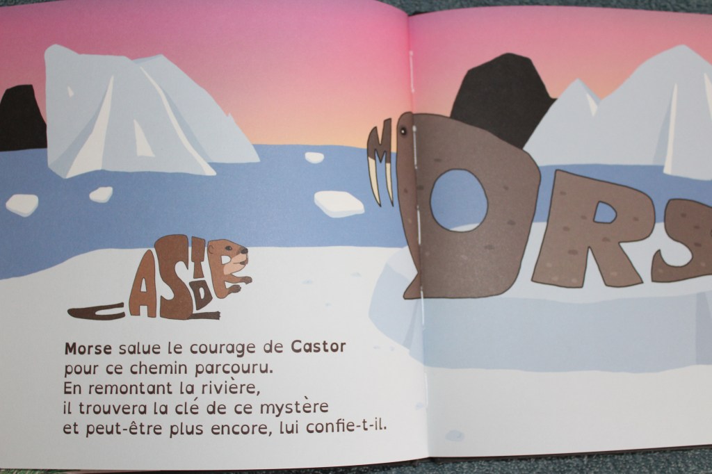 Dans le nord il y a castor est un livre qui nous raconte l’histoire d’un castor qui part à la recherche d’un morse sur la banquise afin de trouver la raison pourquoi la rivière ou il a construit sa hutte n’a plus d’eau.