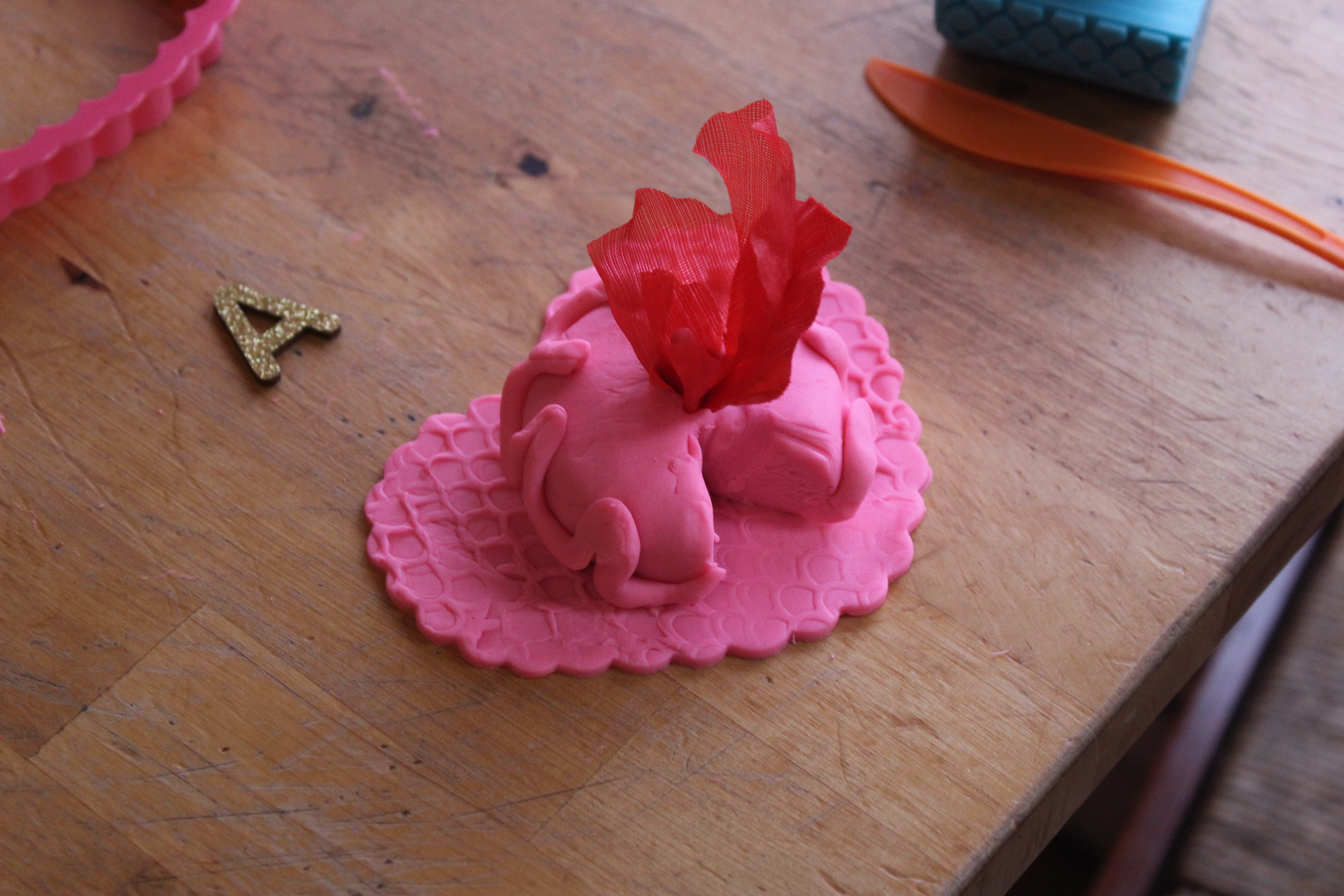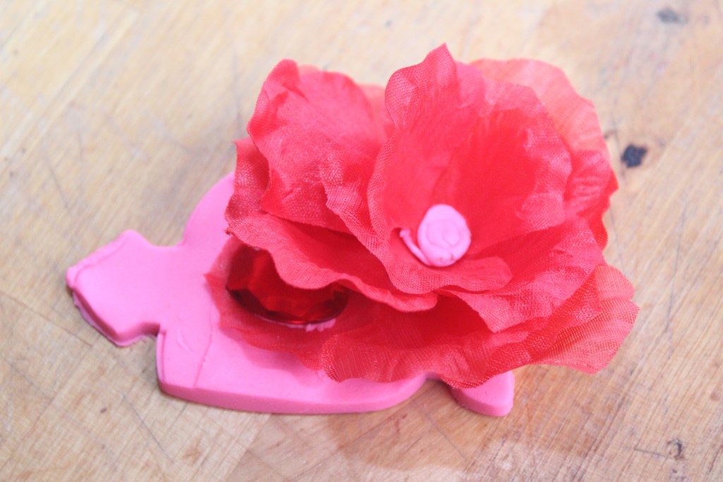 Quelques pétales de roses en tissus, de la pâte à modeler et des gemmes et voilà la créativité est invité à jouer et se libérer.