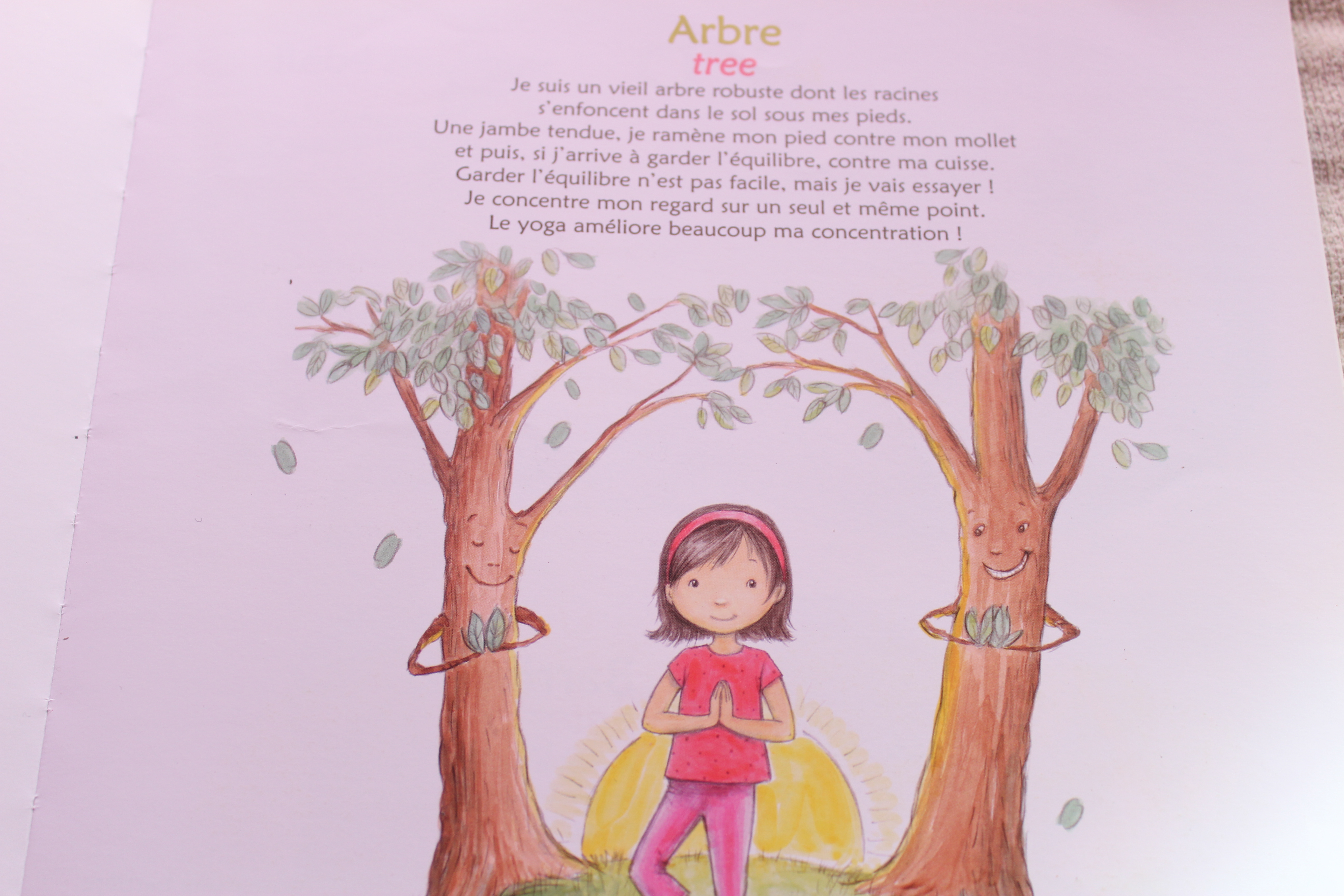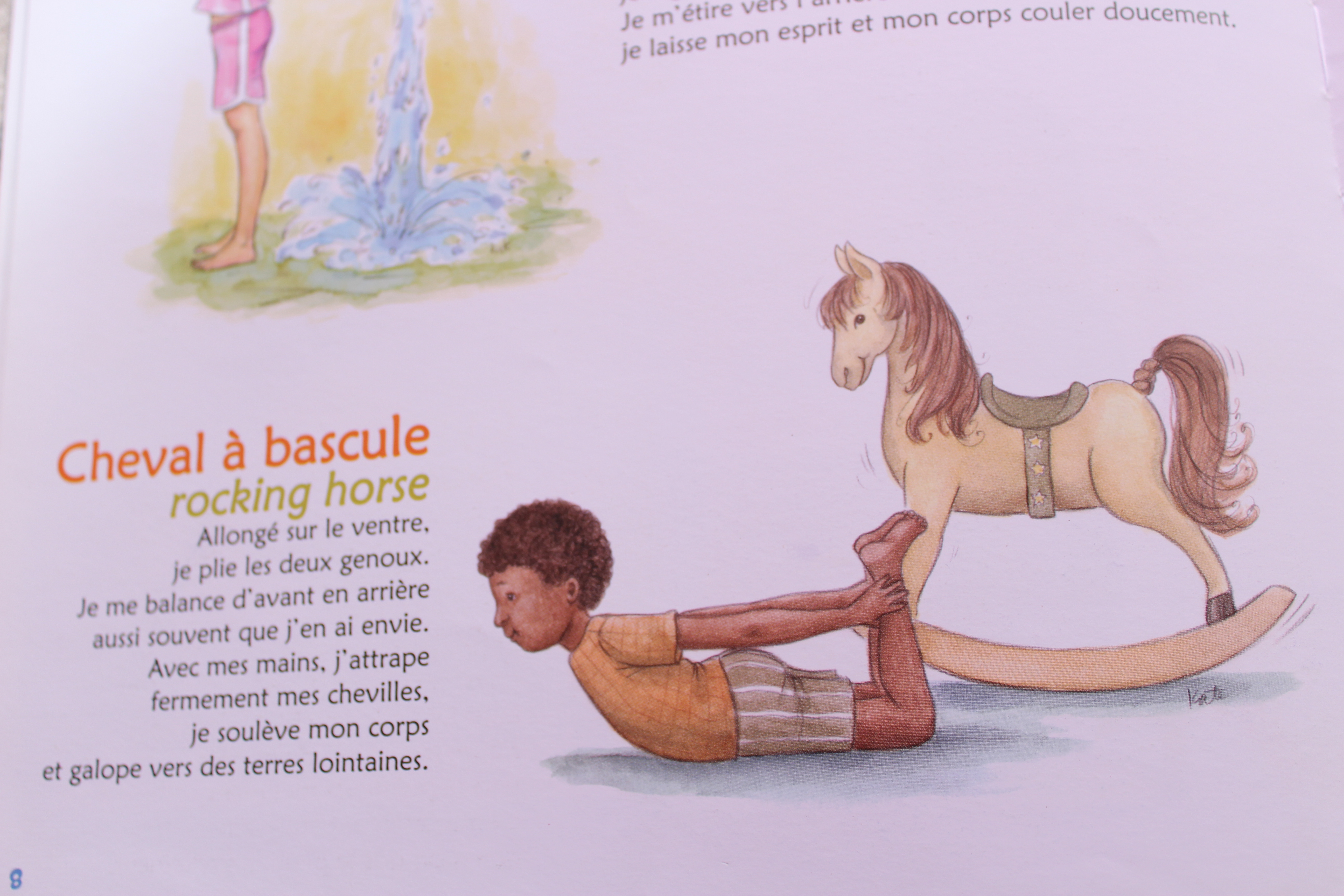 Comme vous pouvez le voir ce livre est usé, c’est parce que Eliza adore de faire toutes les postures et elle dort même avec ce livre tellement elle l’aime. En complément de nos livres yoga on a aussi utilisé notre dé de motricité qui combine des postures de yoga avec des mouvements.