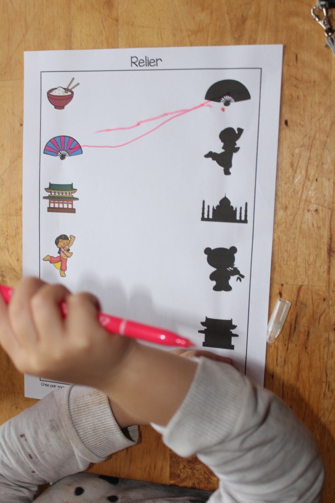 Une fois l’asie localisé sur la carte nous nous sommes approfondie en regardant notre livre « Cartes » c’est un livre très détaillées et les enfants peuvent passer du temps tout seuls a regarder les pays l’un après l’autres.