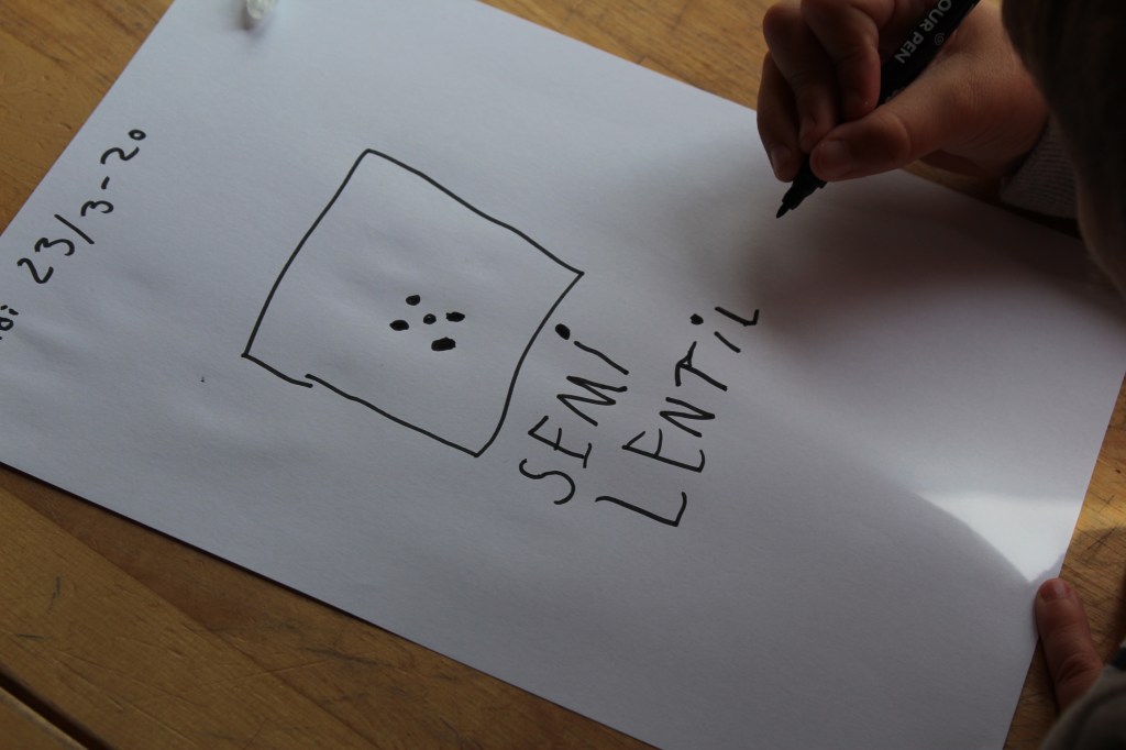 L’année dernière nous avons réalise le projet scientifique « comment les fleurs boivent« . Et cette année nous avons commencé notre projet scientifique « cycle de vie d’une plante » spécifiquement des lentilles et des pois jaunes. Pour commencer nous avons mouillé des compresses de coton avec de l’eau du robinet, puis nous avons déposé nos graines dessus. Puis nous les avons scellés dans des sacs de congélations. Nous allons observer du jour en jour l’évolution de cette petite expérimentation.