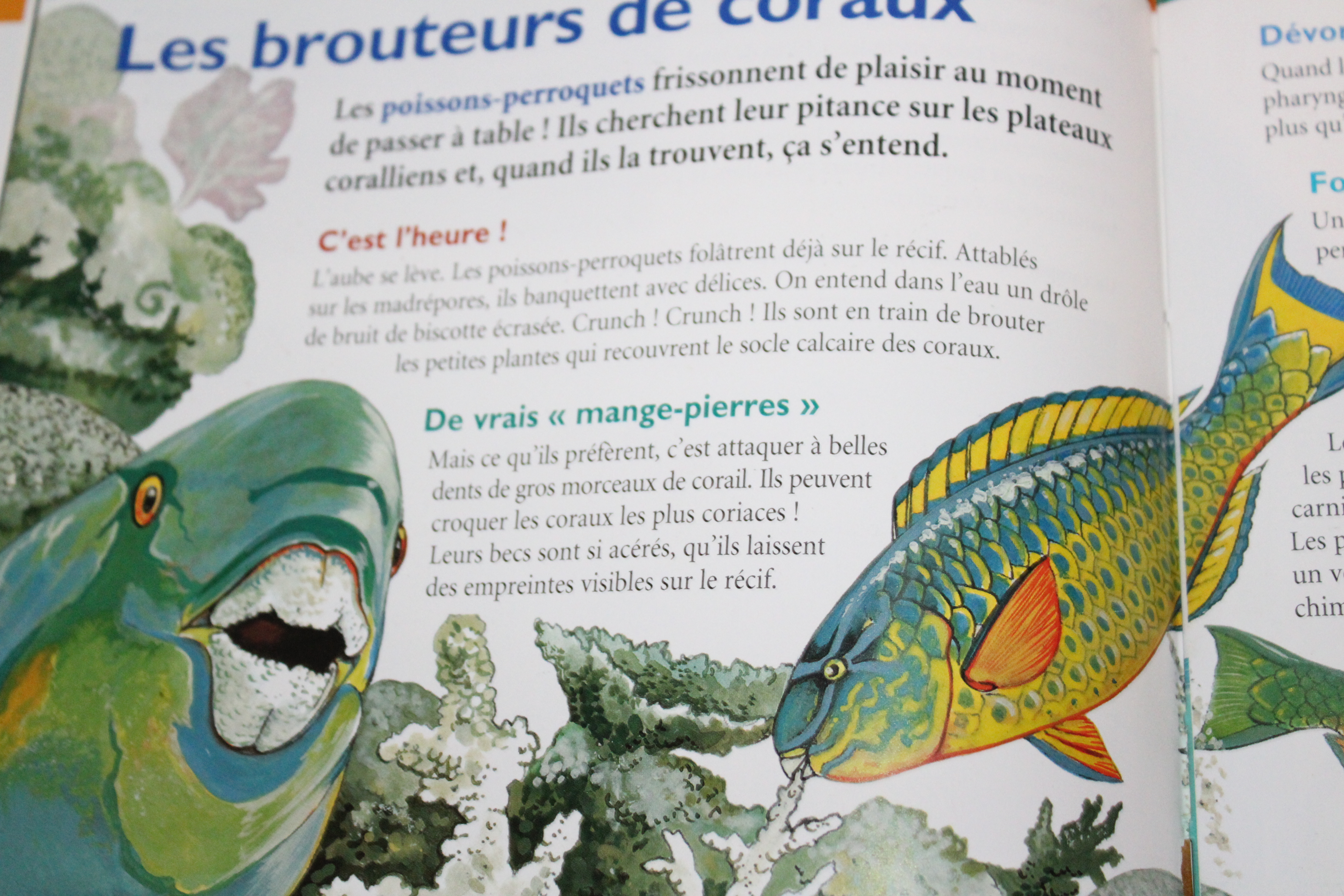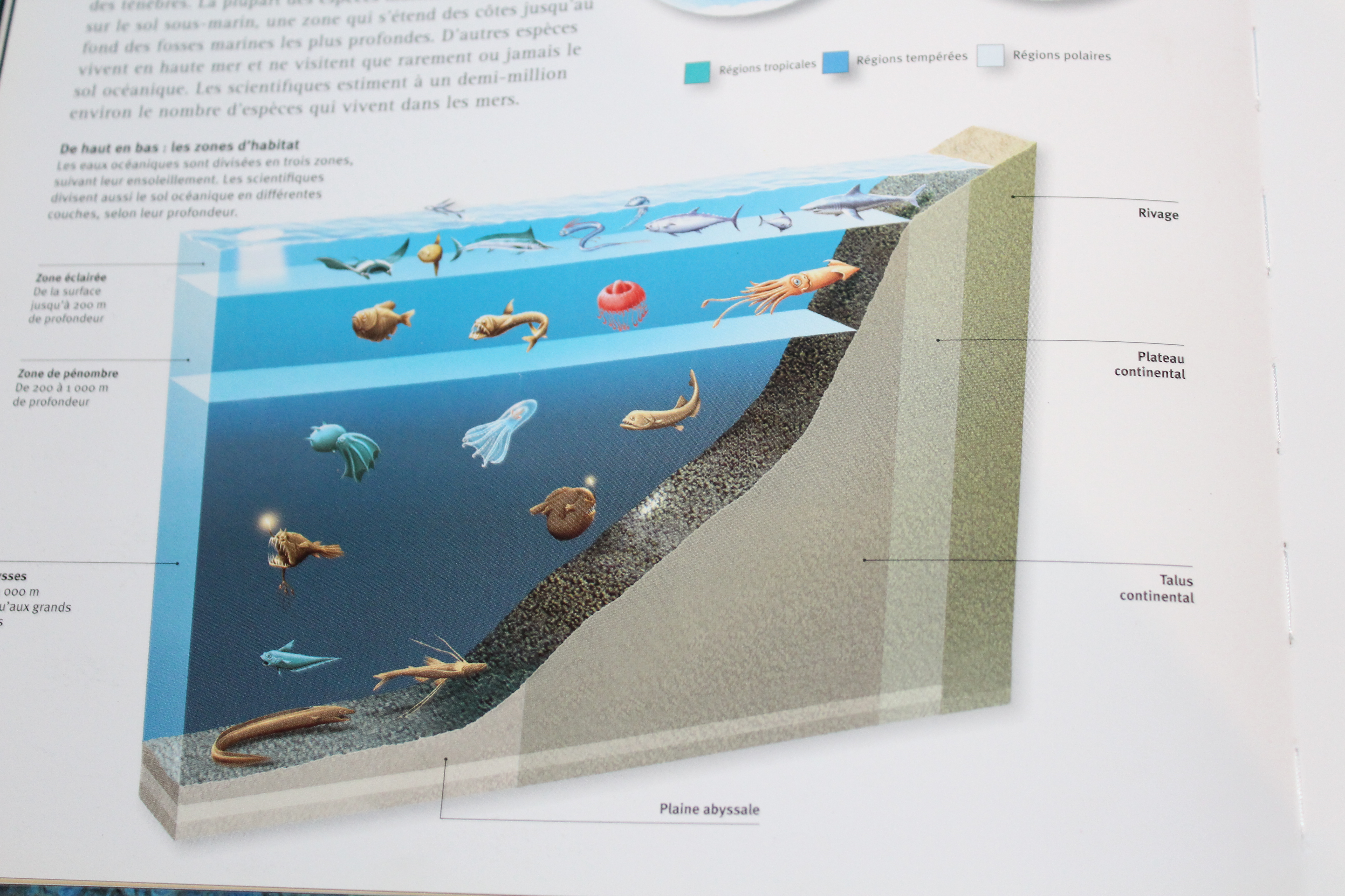 La belle bleue – La vie sous-marine s’organise «par étage» en fonction de la pénétration du soleil. Près de la surface : de grandes nurseries. Cachés dans le sable : des crustacés, des poissons plats et coquillages. En pleine mer, les sardines vivent en bancs pour se protéger de leurs prédateurs Dans les grandes profondeurs, des créatures aux énormes gueules et dents pointues rôdent à la recherche de leurs proies.