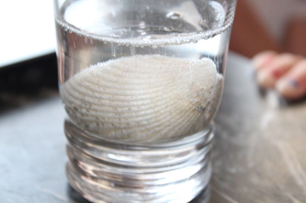 pour réaliser ce petit expériment c’est très simple: remplis un verre de vinaigre et dépose un coquillage à l’intérieur. Ensuite, il faut patienter quelques jours et observer ce qui se passe dans le verre.