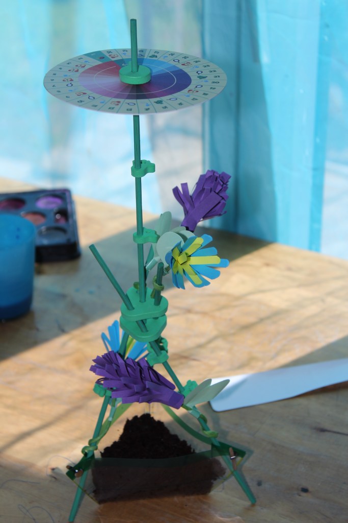 Ce mois ci c’est les plantes qui sont a l’honneur. Zoë c’est régalé a construire le pot mais surtout les fleurs, maintenant elle prend du plaisir à s’en occuper en regardant la roue tous les jours pour voir ce qu’il faut faire. Le plus amusant pour ma grande c’était de créer les fleurs en papier, malgré que cela soit un petit peu difficile pour ses petites mains.