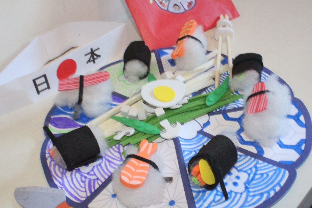 Il y avait une assiette en papier à décorer, le livret et des sushis à réaliser.