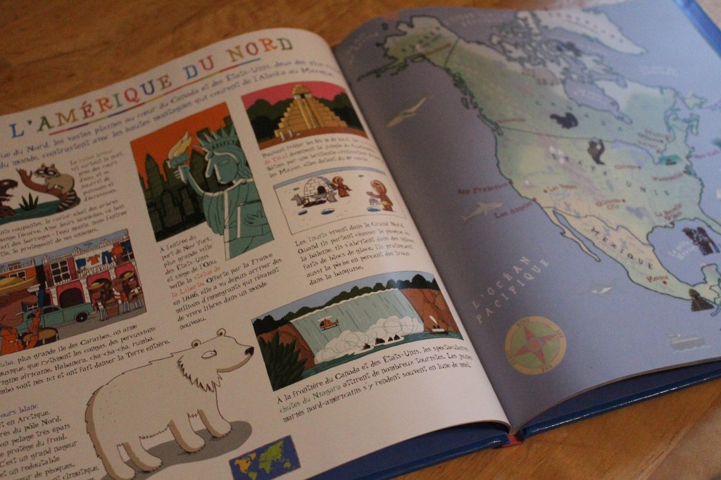 Qui dit Thanksgiving dit petit cours de géographie et pour cela nous utilisons ce livre qui a des feuilles en papier calque qui permet de voir à travers certains pages.