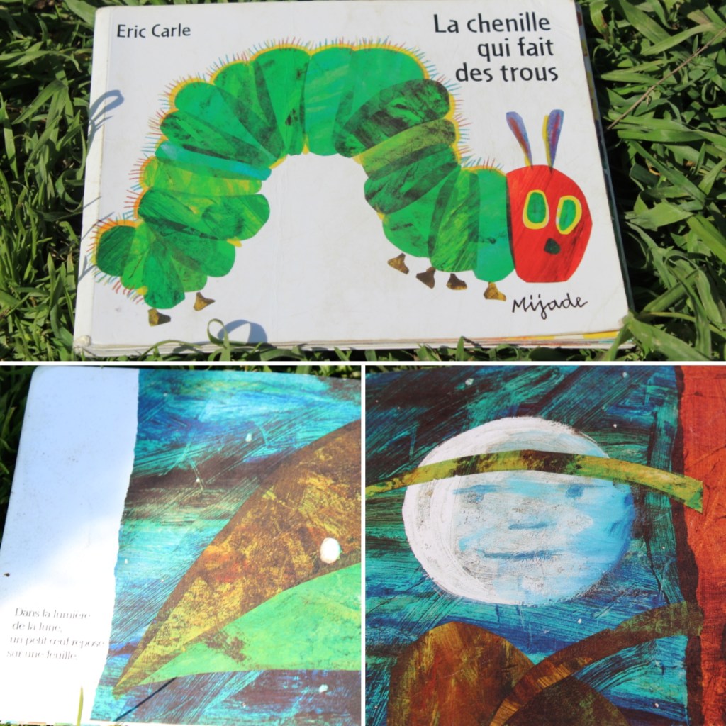 La chenille qui fait des trous – La petite chenille est très gourmande. Au bout d’une semaine, elle est devenue énorme. Mais le papillon qu’elle deviendra aura toutes les couleurs de ses festins. L’ouvrage permet à l’enfant d’apprendre les chiffres puisqu’au fil des pages le nombre de trous fait par la chenille augmente.