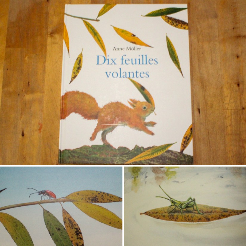 Dix feuilles volantes – pour apprendre à compter ce livre est d’une douceur, c’est l’automne. Le vent emporte les dix feuilles jaunies d’une branche de saule. Sont-elles vraiment mortes ?