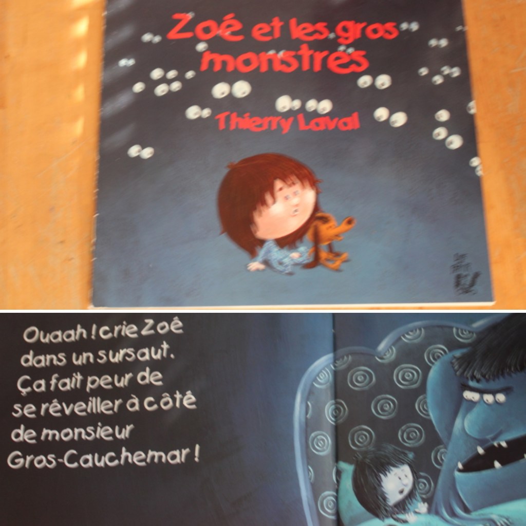 Zoé et les gros monstres – bon ma fille Inez en a eu peur de ce livre mais l’histoire est mignon à la fin, c’est une petite fille qui fait des cauchemars.