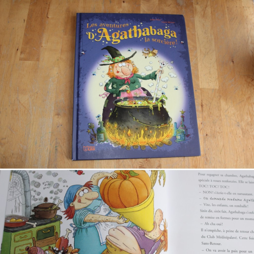 Agathabaga tome 1 – Pour soigner sa grippe, la sorcière Agathabaga se prépare une décoction de cafards… et se retrouve couverte de gros boutons orange. Elle se maquille avec du jus de piment et de la graisse de crapaud. Et il lui faudra défoncer tous les murs de sa chaumière avant de réaliser qu’ elle ne sait peut-être pas se servir correctement de son balai à réaction…