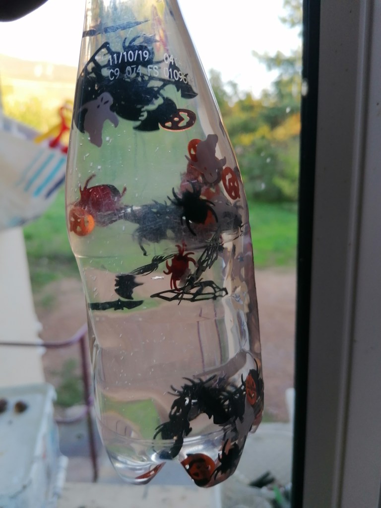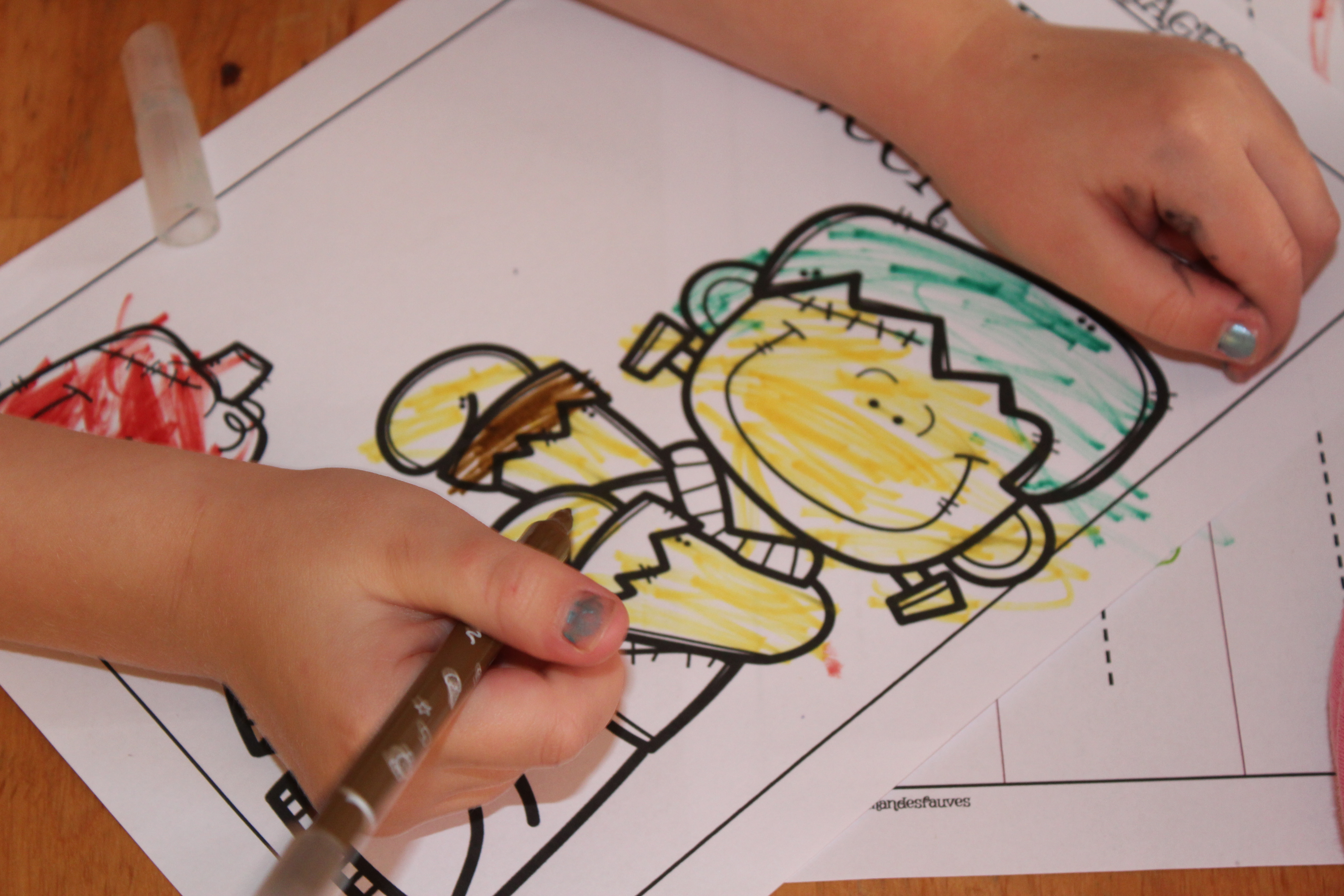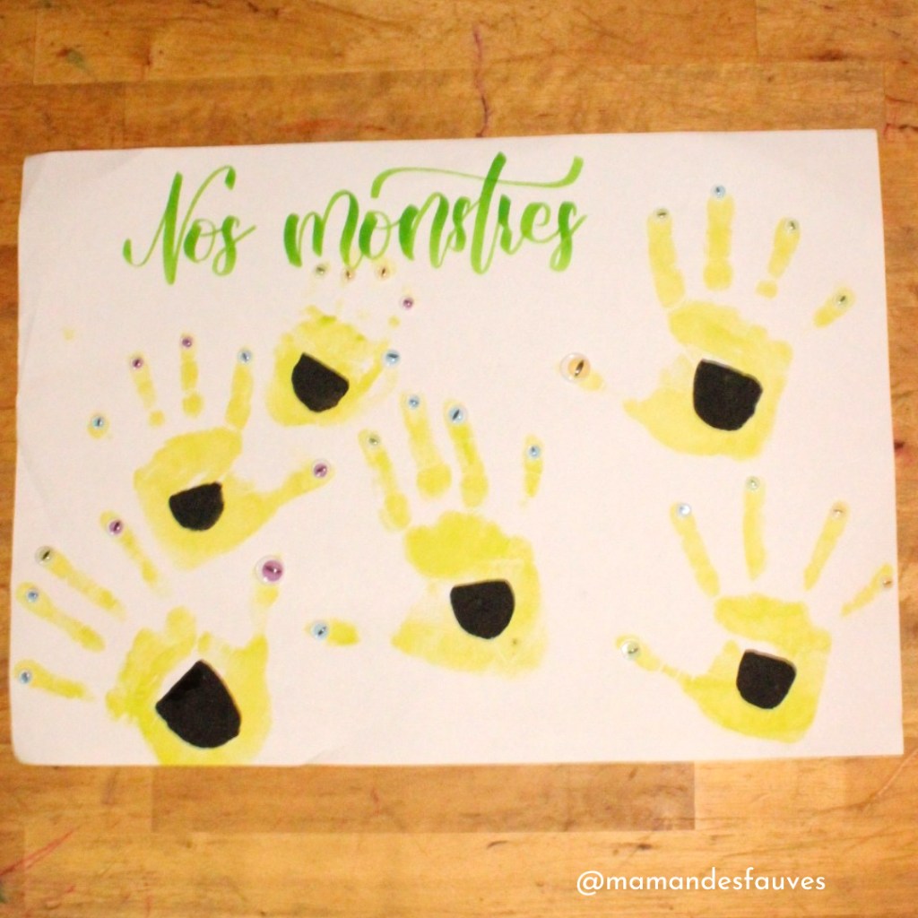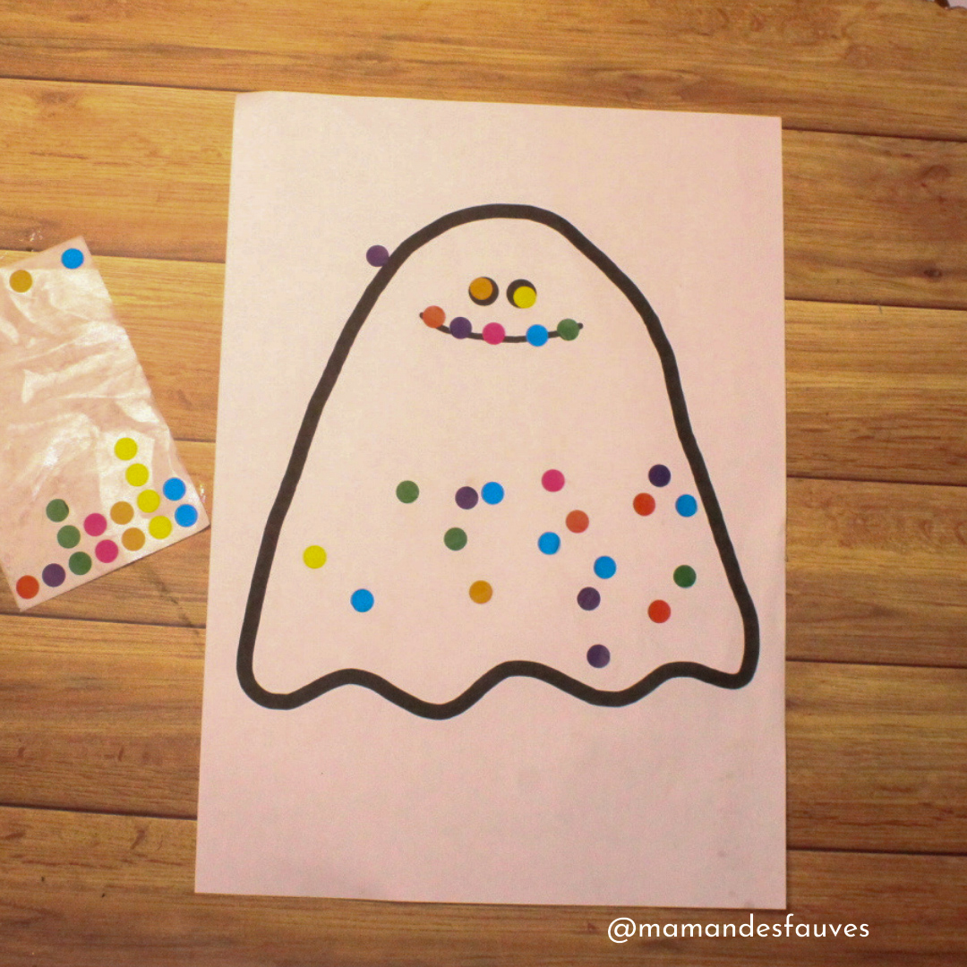 Notre décoration de la fenêtre du salon. Noua réalisons des cadeaux pour les maîtresses, atsem et avs pour Noël et l’été cette année nous avons confectionné des petits sablées aux chocolat. Comme chaque année nous avons réalisé ce petit projet cette année les empreintes de leurs six mains ce sont transformés en monstres. Cerize a collé des gommettes en suivant les lignes et en décorant l’intérieur du fantôme. Cerize apprend à dessiner à l’intérieur avec ce petit cahier. Pour travailler le graphisme Inez à décoré une spirale avec des boutons. Tamponner à l’intérieur du fantôme pour le décorer. Des petits lanternes réalisés avec la technique déco patch en ajoutant des yeux mobiles et des fils chenilles nous avons des petits monstres