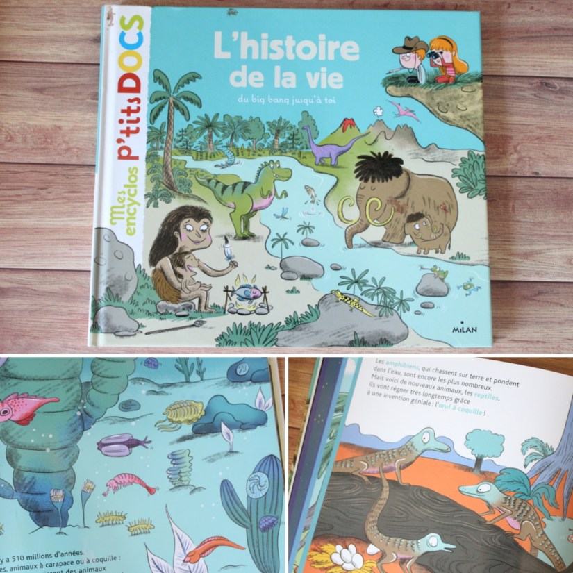L’histoire de la vie – ce livre est superbe pour aborder big bang, les dinosaures et l’évolution
