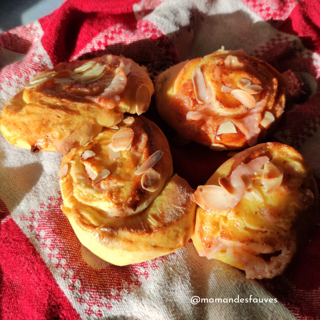 Cette recette est une recette ultra facile à réaliser, mettez tout les ingrédients sauf la farine dans un bol et ajoutez la farine petit à petit. Si vous avez un robot pâtissier la pâte doit être pétri 10 minutes et toujours être collante mais décoller des parois quand elle est prête. Laissez lever au moins 1 heure puis sois formez 72 petites brioches en formes de S ou soit vous pouvez étaler la pâte pour faire des roulés. Laissez lever encore 50 minutes, badigeonnez avec l’œuf puis enfournez à 175 degrés pendant 10 minutes.