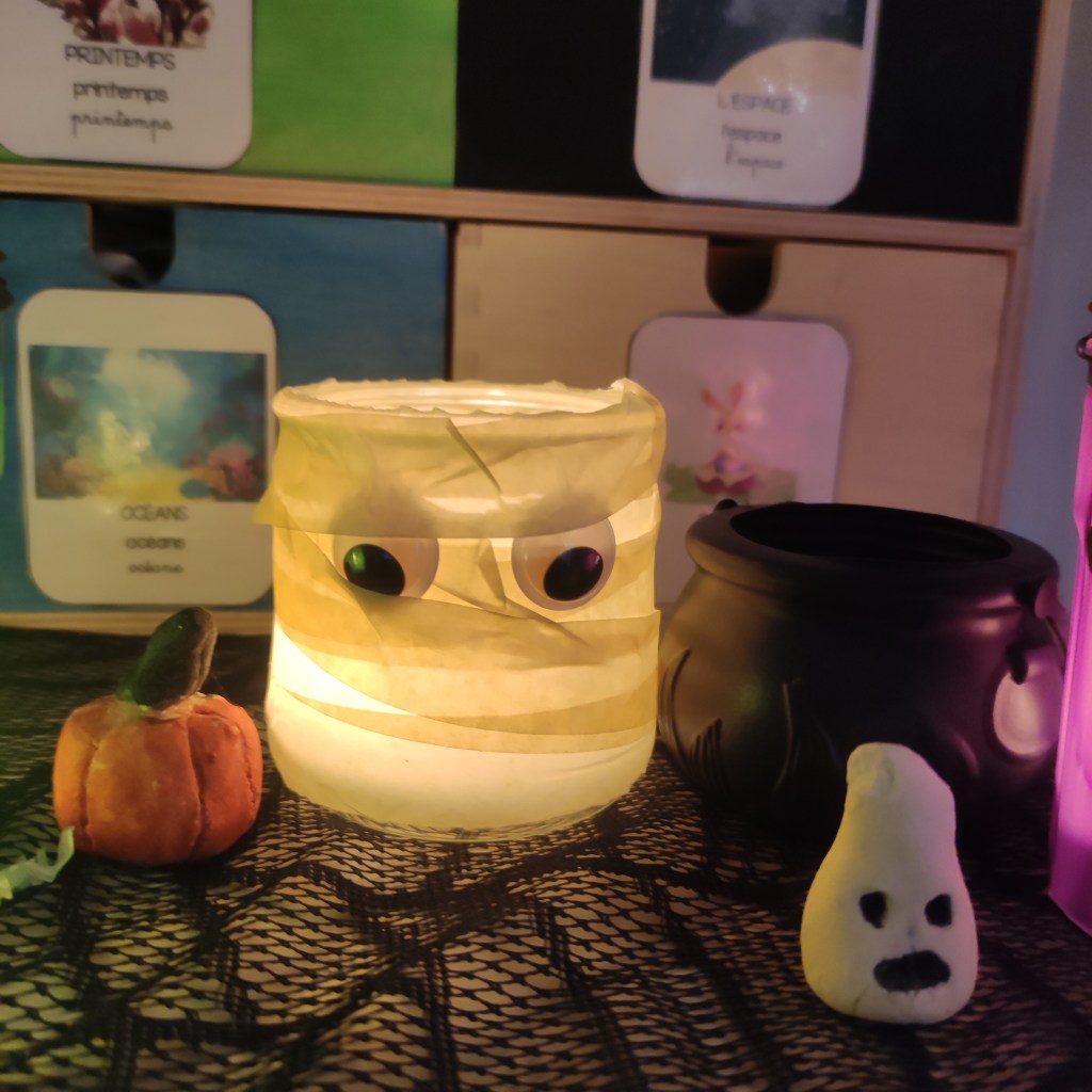 HalloweenNos activités d’Halloween 2023 13 novembre 202317 novembre 2023 mamandesfauves Photophore momie Bac sensorielle toile d’araignée Petite activité mathématique Nos préparations culinaires Araignées en pâte feuilletée Mousse au chocolat Gâteau fondant d’Halloween Doigts de sorcières Cupcakes chauve souris Croque momie Gâteau toile d’araignée Nos activités artistiques Des petits fantômes en soufflant la peinture Ici à l’aide d’un bout de carton nous avons tiré la gouache blanche Potions magiques View this post on Instagram A post shared by Claire (@mamandesfauves) Partager : Partager sur X(ouvre dans une nouvelle fenêtre) X Partager sur Facebook(ouvre dans une nouvelle fenêtre) Facebook Partager sur Pinterest(ouvre dans une nouvelle fenêtre) Pinterest Envoyer un lien par e-mail à un ami(ouvre dans une nouvelle fenêtre) E-mail J’aime chargement… Similaire