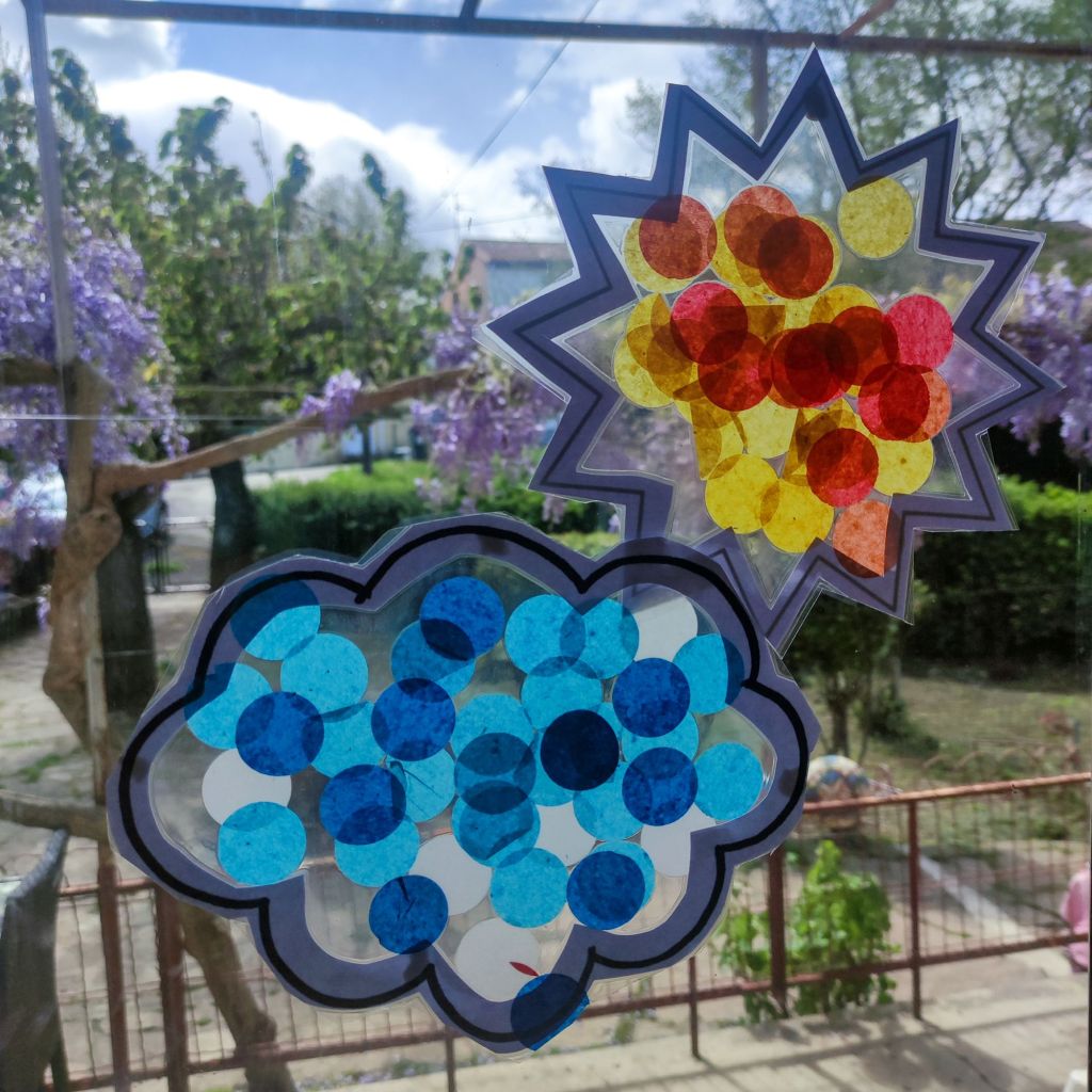 Ça va faire 6 ans que je partage avec vous nos créations, des attrape soleil ce n’est pas la première fois qu’on en fait ni la dernière. Cependant ici j’avais essayé avec des pochettes à plastifier.