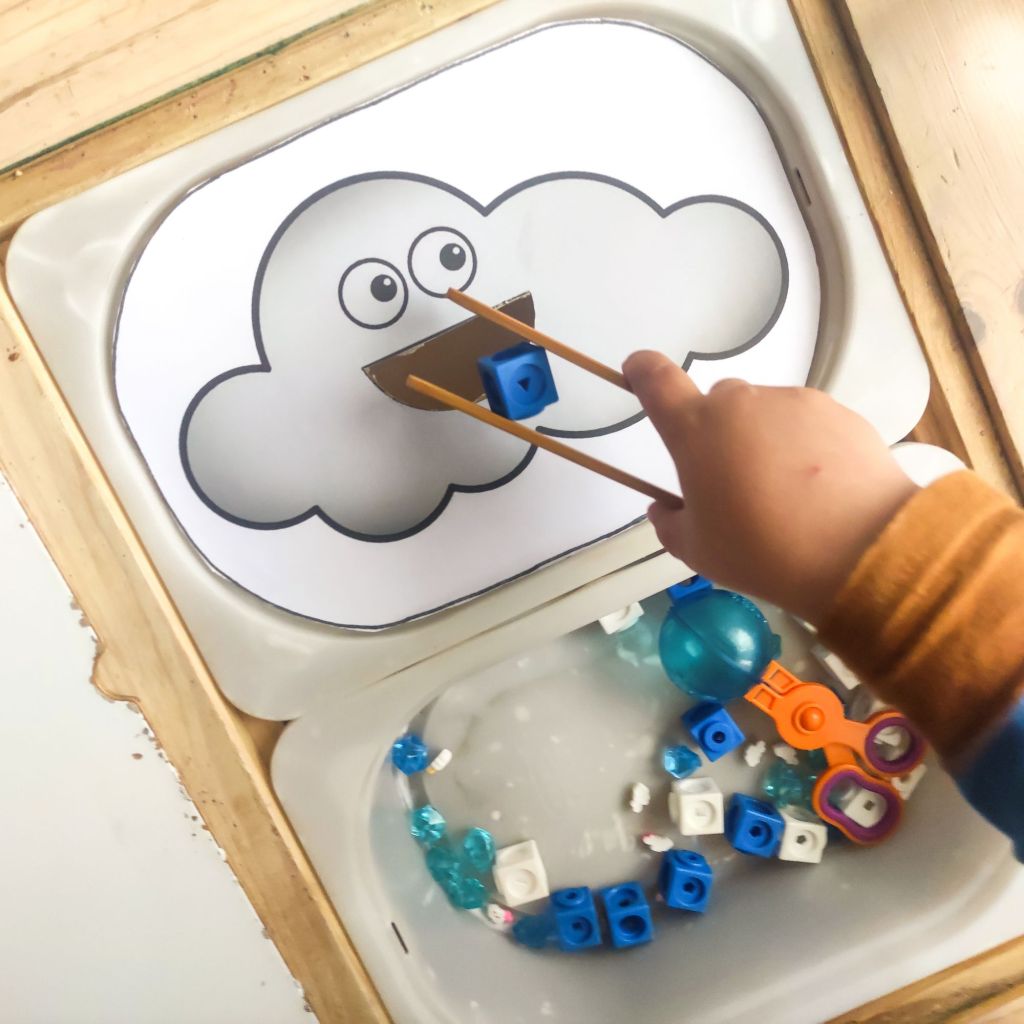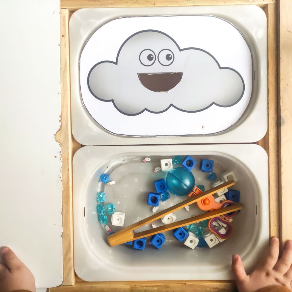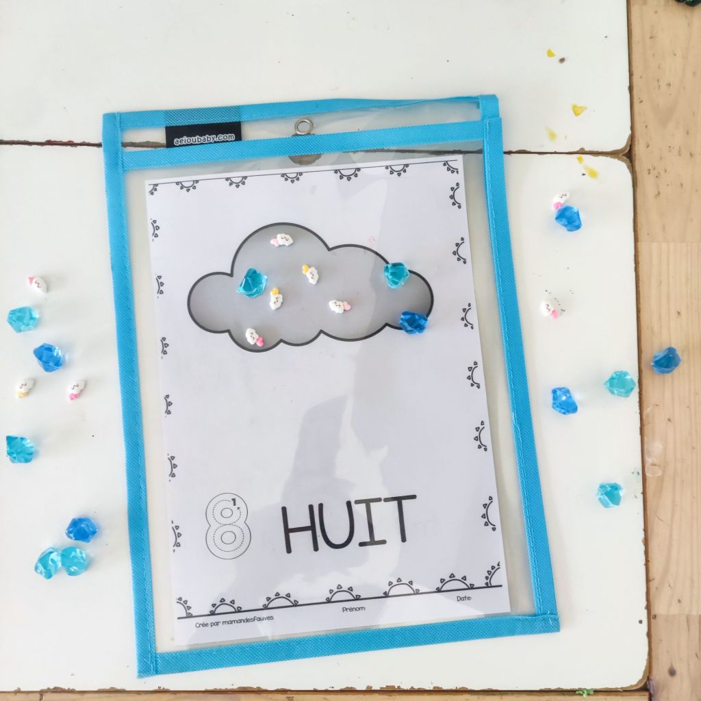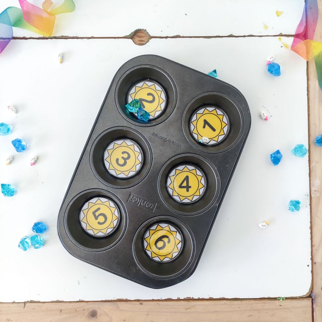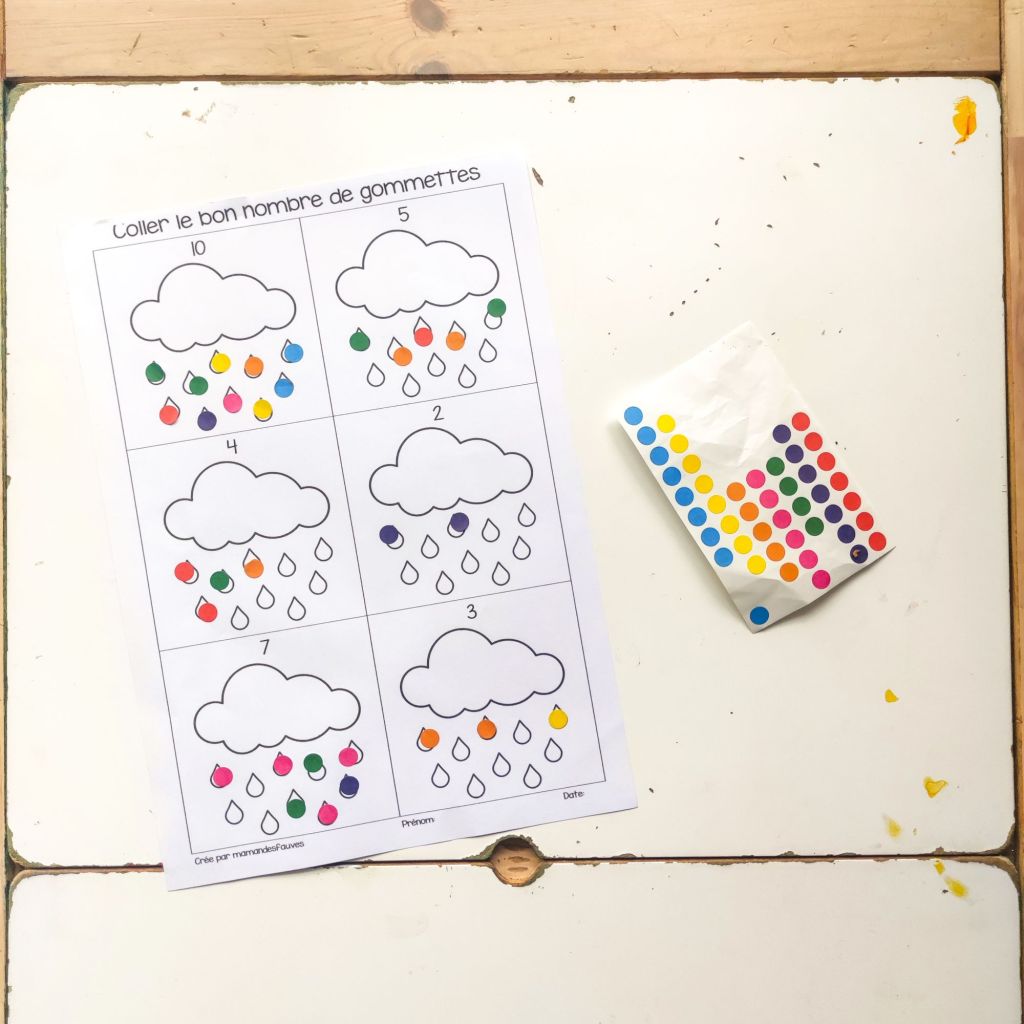 Une activité qu’au premier vu d’œil à l’air bien facile mais ne l’est pas quand t’es petit. Ici en deux versions : déposer le bon nombre de gouttes sur le nuage où dans les moules à muffins sur les soleils.