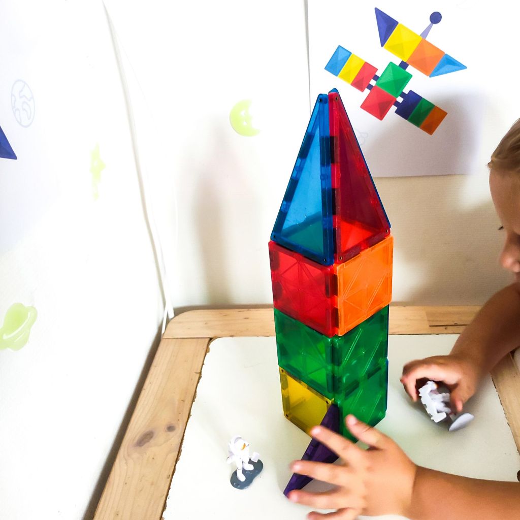 Utilisez des aimants de construction pour encourager la créativité et la résolution de problèmes. Les enfants peuvent construire leurs propres fusées, stations spatiales ou rovers lunaires. Cette activité est parfaite pour apprendre les bases de l’architecture et de l’ingénierie tout en s’amusant.