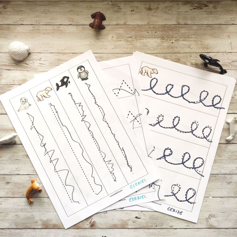 Pour préparer les enfants à l’écriture, nous avons travaillé sur des exercices de graphisme inspirés de l’Arctique. Tracer des lignes ondulées comme les vagues glacées, suivre des chemins sinueux pour aider un ours polaire à retrouver sa famille, ou encore reproduire des motifs inspirés des flocons de neige – tout cela a permis d’améliorer leur motricité fine de manière amusante.