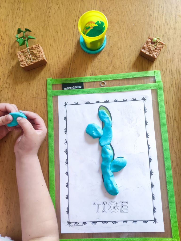 Nous avons sorti nos tapis plastifiĂ©s reprĂ©sentant des scĂšnes du conte, et les enfants ont modelĂ© des haricots, des tiges grimpantes et mĂȘme le gĂ©ant ! Parfait pour renforcer la motricitĂ© fine tout en dĂ©veloppant leur crĂ©ativitĂ©.