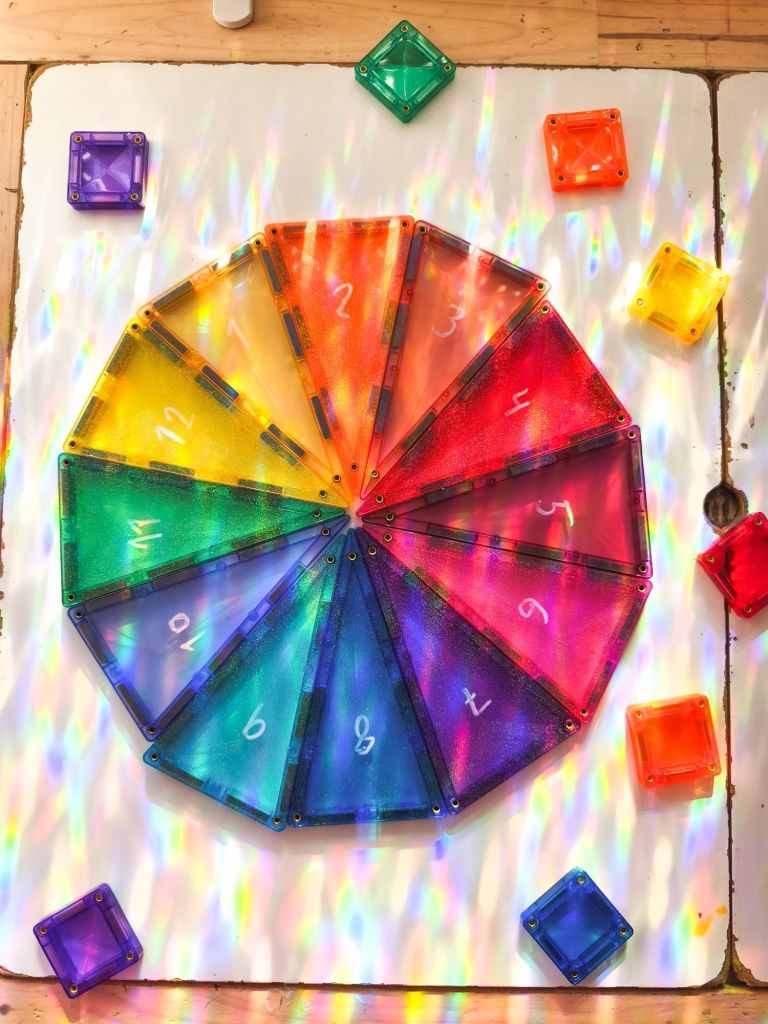 Les enfants ont rĂ©alisĂ© une couronne Ă lâaide de tuiles aimantĂ©es, dĂ©corĂ©e avec des mini tuiles aimantĂ©es, favorisant lâexpression artistique et le plaisir de crĂ©er.